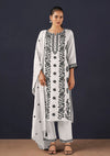 The top and bottom of this Cream Chikankari Kurta Set are made from Modal Chanderi fabric, featuring beautiful Chikankari embroidery on the top and elegant embroidery design details on the bottom. The set also includes a Viscose Linen dupatta with scallop embroidery and tassels, adding an extra touch of sophistication to the set. All materials used are high-quality Modal Chanderi, ensuring both comfort and style.