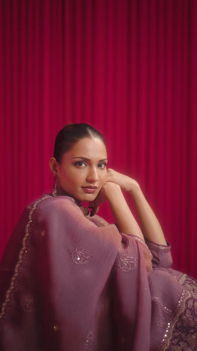 This crush organza kurti is a canvas of delicate border embroidery, bringing a touch of artistry to your wardrobe. Paired with a tonal viscose bottom and a matching crush organza dupatta with scalloped edges, it transforms everyday dressing into a celebration of elegance and finesse.