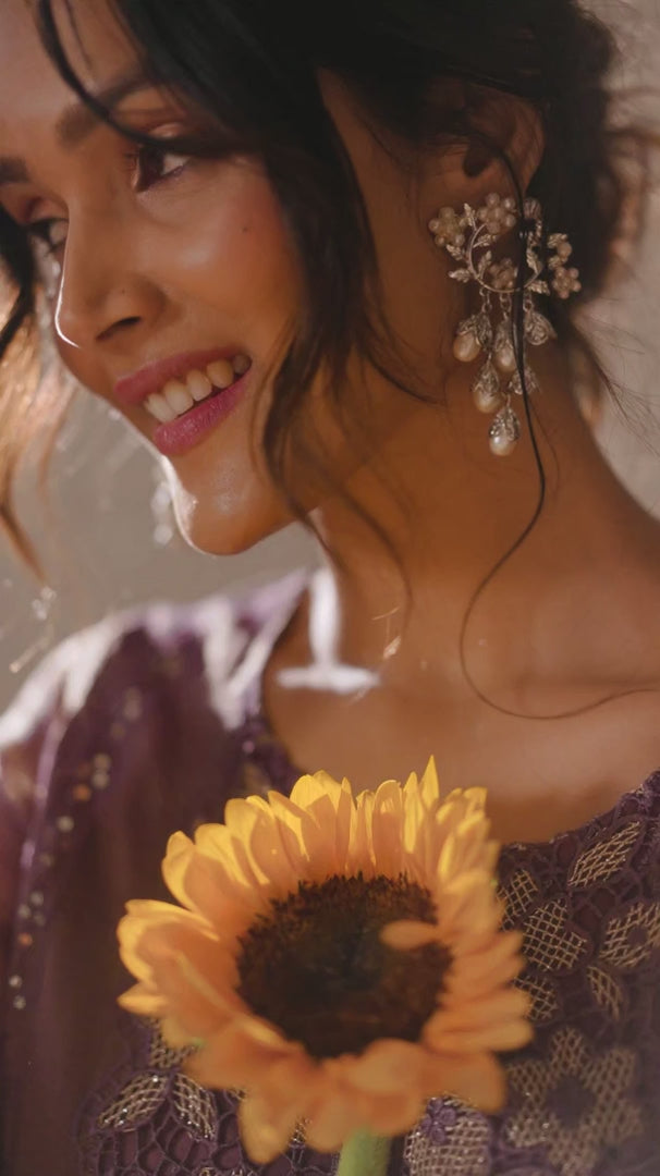 Step into elegance with this Crush Organza Border Embroidery Set in regal purple. The kurti features delicate border embroidery on lightweight crush organza, paired with a tonal viscose bottom. A matching crush organza dupatta with embroidered scallops completes the look, perfect for festive or evening occasions.