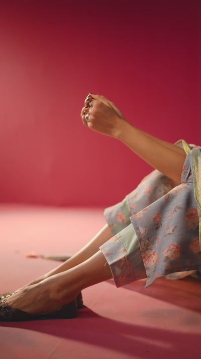Enriched with delicate embroidery, complemented by a tonal cotton bottom and coordinating digital print dupatta, we have curated this kurta set for you to make heads turn wherever you go!