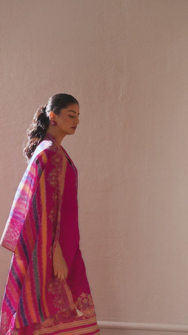 Unveil your inner desi girl with this digital print viscose kurti, enriched with intricate embroidery and paired with a tonal bottom and coordinating digital print viscose dupatta, creating a look that translates your soul!