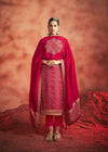 This set includes a Bandhani jacquard kurti with embroidery, a viscose bottom with jacquard details, and a matching georgette dupatta.