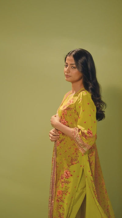Intricate handwork brings this digital print crepe silk kurti to life, making every detail a work of art. Paired with a tonal viscose bottom and a coordinating crepe silk dupatta, it’s an ensemble designed for those who appreciate refined craftsmanship.