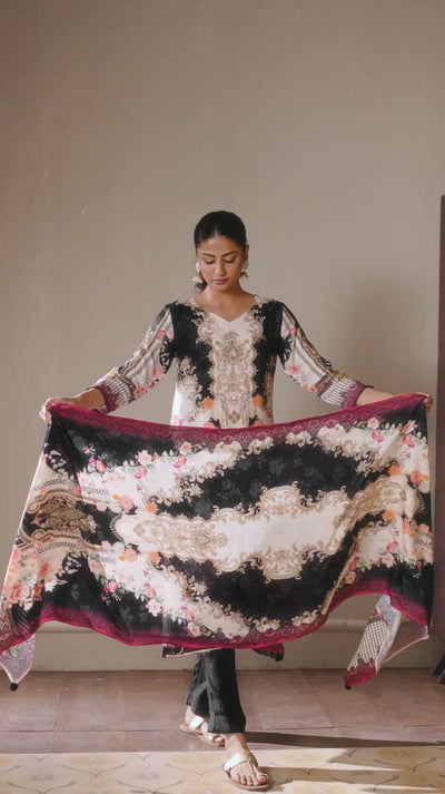 Heavy Muslin Digital Print Kurta, Viscose Bottom and Dupatta Set