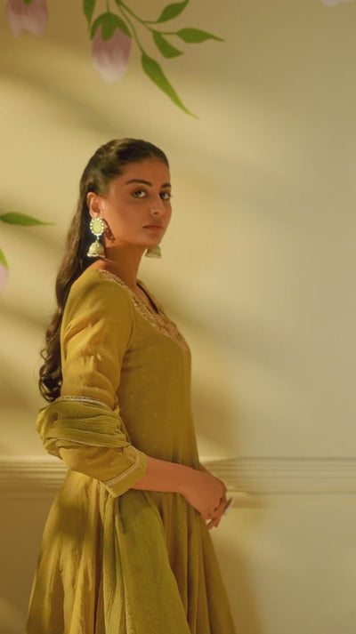 Moss Green Mul Chanderi Embroidery Anarkali Kurta Set Sale priceRs. 6,399.00