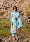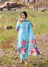 Cool and composed, Orelis draws from the quiet charm of dusky skies. Crafted in soft cotton, the 3/4th sleeve kurta features a graceful digital print with delicate embroidery, offering texture and elegance in every detail. Paired with a cotton bottom and dupatta in tonal blue, this set balances everyday ease with timeless refinement.