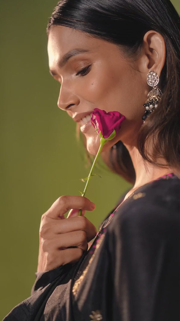 Add a touch of artisanal charm with this Russian Jacquard Meena Work Set. The kurti features intricate Meena and handwork details on premium Russian jacquard, paired with a soft viscose tonal bottom. A matching Russian jacquard dupatta in tonal shades completes this elegant ensemble, perfect for festive occasions or special celebrations.