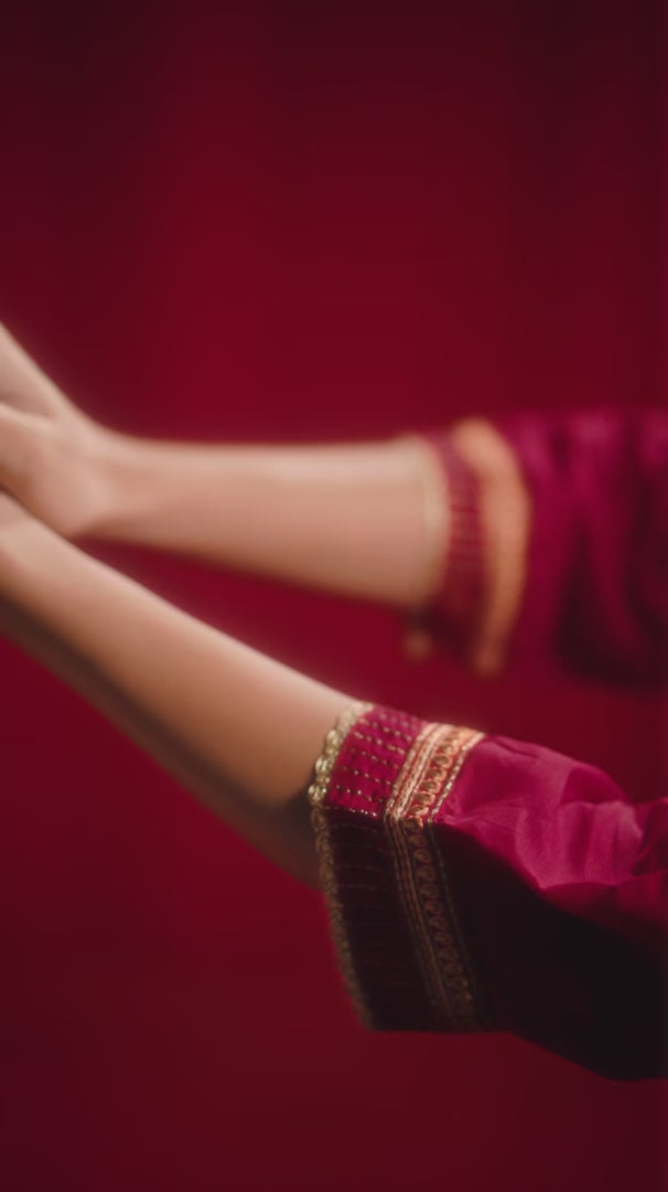 Elevate your wardrobe with a set that is sophisticated and stylish! This Russian fabric kurti, adorned with intricate handwork and heavy embroidery that exudes artisanal elegance. Paired with a tonal viscose bottom and a digital print Russian jacquard dupatta makes it the perfect fit for your festivities.