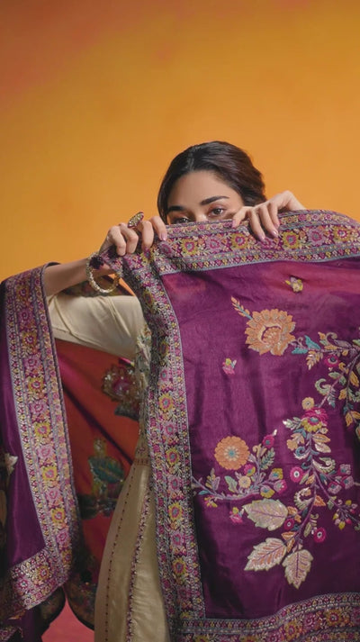 A masterpiece of understated opulence, this Cream Dola Silk Kurta Set redefines timeless elegance. The kurti, adorned with heavy embroidery and intricate handwork, reflects a rich legacy of craftsmanship. Paired with a tonal viscose bottom and a contrast jacquard dupatta, the ensemble radiates effortless sophistication