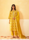 Brighten your festive look with the Saffron Mustard Kurta Set, made from luxurious modal Chanderi. Known for its soft, lightweight feel and natural shine, the fabric perfectly complements the kurta’s intricate embroidery. Complete with coordinating straight pants and a delicate dupatta, this ensemble adds a warm and sophisticated touch to any celebration.