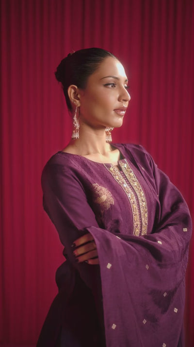 Step into timeless elegance with this Dola silk kurti, adorned with intricate placement jacquard patterns, embroidery, and delicate handwork. Paired with a tonal viscose bottom and a coordinating Dola silk jacquard dupatta, this ensemble radiates effortless charm and grace.