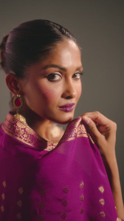 Yarn dyed viscose jacquard silk kurti with handwork, tonal viscose silk bottom and yarn dyed jacquard silk dupatta